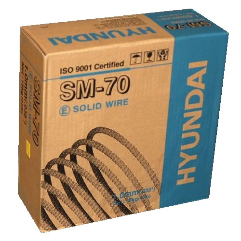 Hyundai SM 70 сплошная сварочная проволока для сварки углеродистых и низколегированных сталей в CO2 или Ar/CO2 защитном газе. Подходит для применения во всех пространственных положениях.
