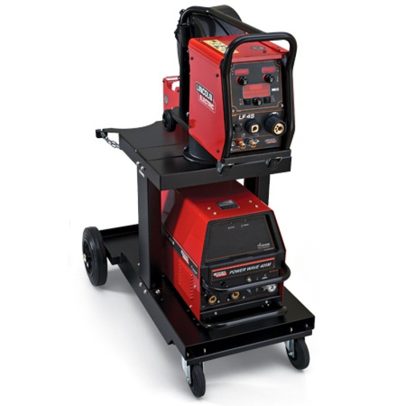 Power Wave 405M c полуавтоматическим механизмом подачи проволоки LF-40 спроектирован для удобства работы сварщика. Простая и удобная настройка параметров, т. к. все настройки находятся непосредственно на механизме подачи. Источник тока может находиться на определенном расстоянии и имеет только основные регулировки. Прочная, надежная конструкция, предназначена для промышленных целей. При употреблении сплошной проволоки при выходных характеристиках 400А, аппарат подходит практически для всех процессов, благодаря импульсному режиму и CV. Механизм подачи проволоки может прикрепляться к источнику или быть в переносной версии. Аппарат оснащен блоком жидкостного охлаждения Coolarc 10 и тележкой.