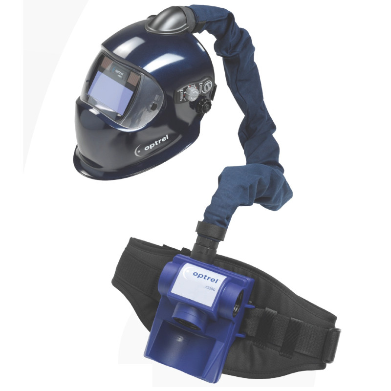 Болк принудительной подачи воздуха Optrel e2100 обеспечивает вентиляцию подмасочного пространства и защищает органы дыхания от сварочных газов, паров и мелких цастиц.